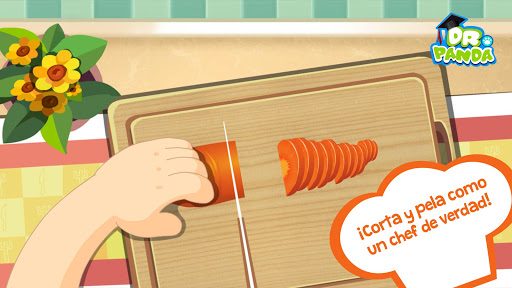 En esta aplicación, los niños se podrán iniciar en el mundo de la cocina a través de divertidos minijuegos. Estarán expuestos a un amplio surtido de platos para cocinar, ya que el Dr. Panda tiene un libro de cocina con 10 recetas diferentes de comidas y bebidas. Entre otras muchas, incluye pizza, tarta de manzana, crema de maíz, comida china y batidos de frutas.
