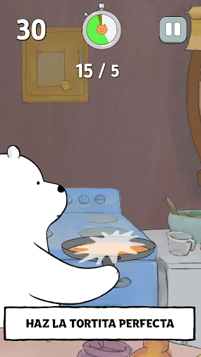 – Vuela, tortita – voltea las famosísimas tortitas de Polar hasta que estén perfectas. Sacude tu dispositivo para darle la vuelta a la tortita. Cuanto más rápido lo mueves, más alto volará la tortita. Da todas las vueltas que puedas, ¡pero cuidado que no lleguen al techo!