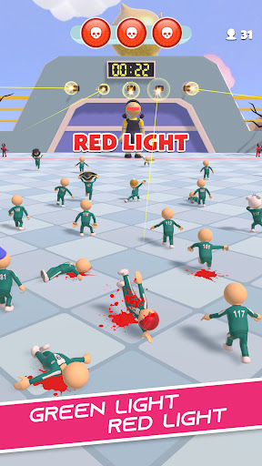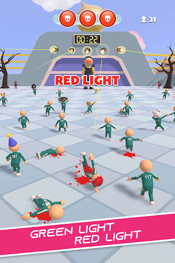 Squid Game: 456 Survival es una serie de K-Games que incluye luz roja verde, desafío de Dalgona, tira y afloja, lucha de medianoche, puente de cristal, rodamiento de canicas. Tu misión es sobrevivir, ganar todos estos juegos coreanos y vencer al resto para tener la alcancía dorada para ti.