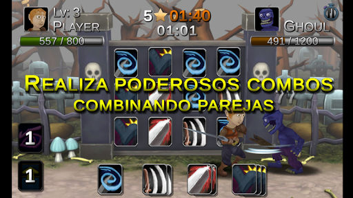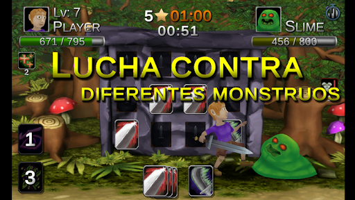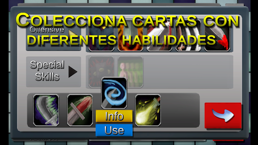 Colecciona cartas con diferentes habilidades que te ayudarán en batalla. Prepara un mazo de hasta 5 cartas ofensivas y 2 especiales de apoyo. ¡Combínalas para hacer poderosos combos!