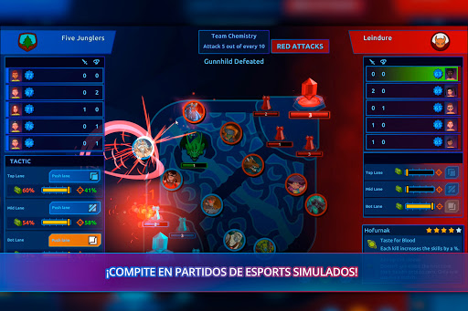 ¡Eres el manager de tu propio equipo de esports! Gestiona la equipación, las estadísticas, los campeones, la energía, las tácticas, el dinero…