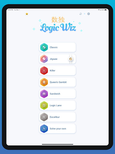 El Logic Wiz Sudoku fue elegido como la Mejor aplicación de Sudoku y la Mejor aplicación de Brain Training. El juego Logic-Wiz Sudoku viene en un formato de Classic Sudoku , así como en 19 variantes de Sudoku . Cada variante es entretenida y desafiante. Las Variantes se dividen en 8 Zonas. Cada zona tiene variantes básicas, algunas de las cuales aparecen en todos los tableros (rompecabezas) de la Zona. Cada Zona tiene 5 niveles de dificultad: Principiante, Fácil, Medio, Difícil y Experto.