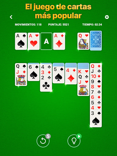 Interfaz simple y fácil de usar. Disfruta del Solitario sin pensar.