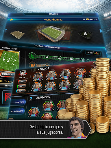 Crea un equipo con los mejores jugadores, entrénalo, evoluciona a sus jugadores y elige la táctica más adecuada para ganar a tus contrincantes.