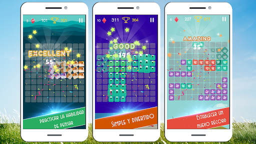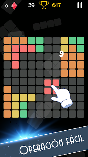 Toque los bloques, arrástrelos y suéltelos en el tablero para completar una fila horizontal o vertical para eliminar bloques y dejar en blanco.