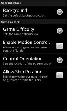 Fácil de usar interfaz de usuario interactivo. En los controles de la pantalla, sin necesidad de un teclado. Opción para activar Gyro dispositivo para controlar la nave. Esta opción oculta el movimiento de empuje controla los botones de vista y le permite inclinar el dispositivo para el control del módulo de aterrizaje.