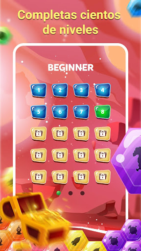 Tu ingenio serán puestos a prueba con este nuevo ángulo en el clásico juego de puzzle de disección! Nuestras únicas piezas hexagonales se abre la mente en formas que nunca imaginó en este adictivo juego de puzzle. Disfrutar de la satisfacción de las piezas de montaje perfectamente en su lugar, llenar el tablero con una explosión de color! Con cada bloque que llena los vacíos, su capacidad crecerá - pero también lo serán los retos!