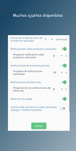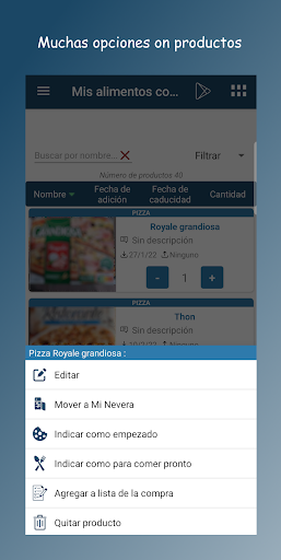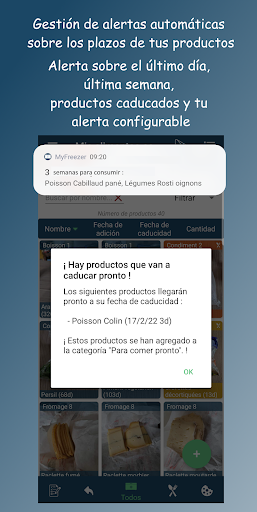 La aplicación gestiona un sistema de alertas, y ubica tus productos que pronto llegarán a su fecha límite en la categoría "Para comer rápido" (configurable).