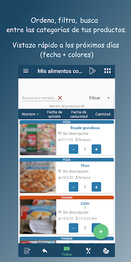 - ¡Ordene sus productos por nombre, fecha de adición, fecha límite o cantidad para una mejor gestión!