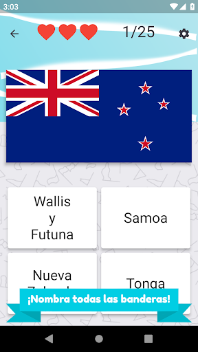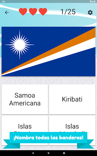 Nombre todos los países de Oceanía y elija la bandera correcta. Hay 25 diferentes países insulares y banderas para adivinar.