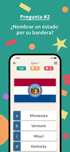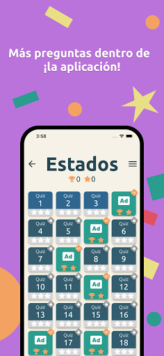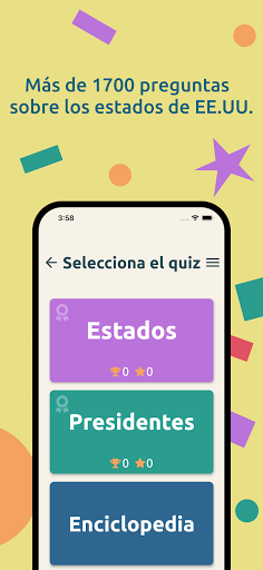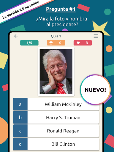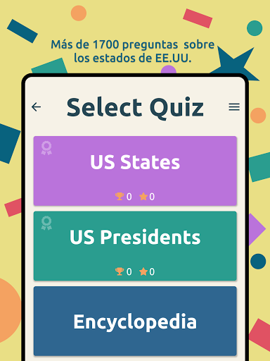 ¡Un poco de desafío hace que todo sea mejor! En U.S. States & Presidents Quiz 2.0 te ofrecemos un reto justo: las pruebas al principio son rápidas y fáciles, pero con cada prueba completada se desbloqueará una nueva prueba más difícil. ¡Te retamos a que los completes todos!