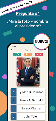 La aplicación U.S. States & Presidents Quiz 2.0 incluye más de 1.700 preguntas sobre los estados y presidentes de EE.UU. en total.