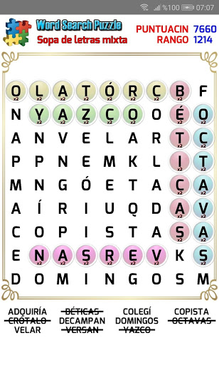 Encontrar palabras ocultas, resolver los rompecabezas.