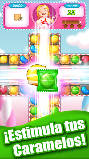 - Intercambiar y combinar 3 o más caramelos del mismo color y forma.