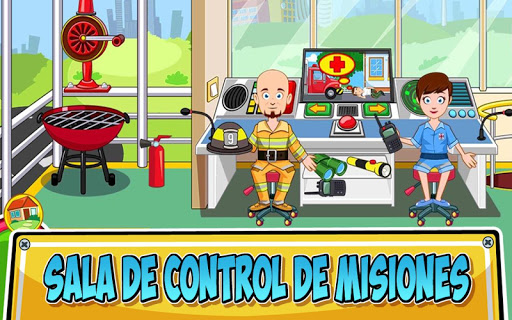 Juega de bombero o paramédico. ¡Recibe llamadas de rescate de emergencia en la sala de control y envía el camión de bombero, la ambulancia y el helicóptero a la misión de rescate!