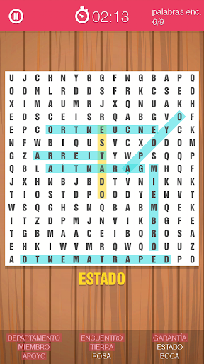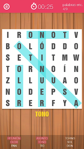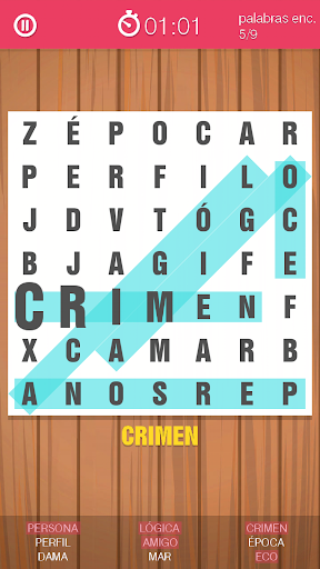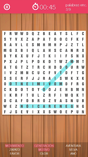 Todo lo que tienes que hacer es buscar una palabra, y cuando encuentres uno, marcar con el dedo desde la primera letra hasta la última. De esta manera, si la palabra es correcta, será marcado con un color distintivo y usted puede buscar en la siguiente.