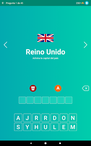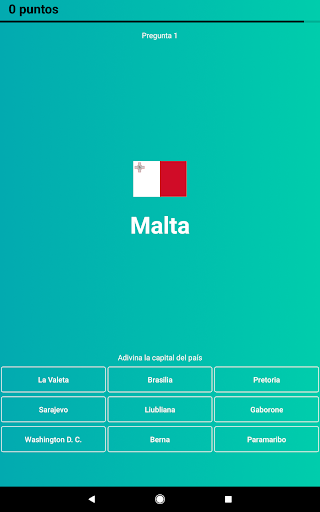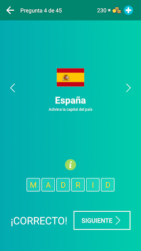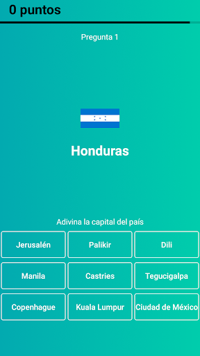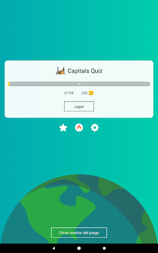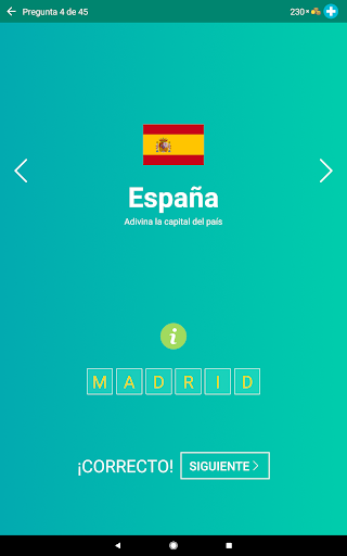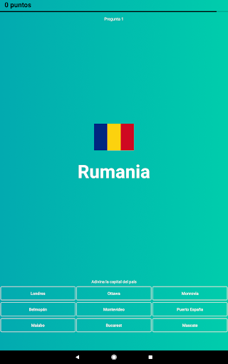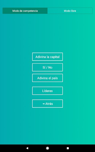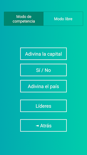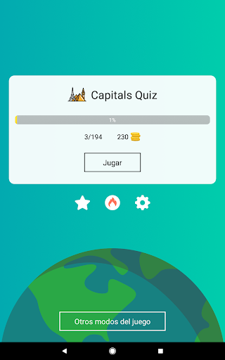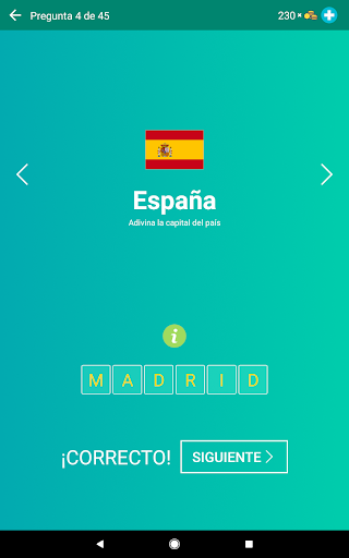 o Modo “Adivina la capital” con opciones de respuestas.