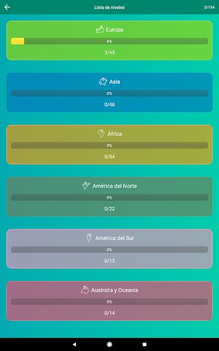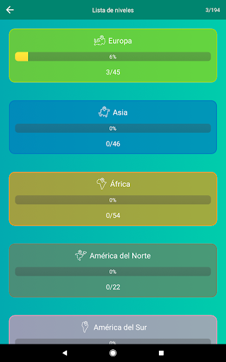 ✩ Estadística en el juego en su totalidad y por cada continente aparte, conozca tus puntos fuertes y débiles en geografía.