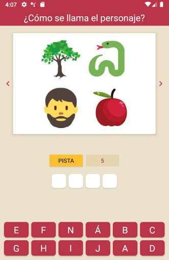 El juego consiste en adivinar por medio de 4 emojis o dibujos el nombre del personaje que aparece en cada nivel. Es importante mencionar que en este juego bíblico las imágenes únicamente hacen referencias a sucesos relevantes.