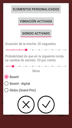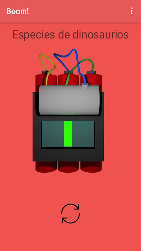 Juego de grupo inspirado en el clásico juego de la patata caliente. Di una palabra sobre el tema que aparece en la pantalla y pasa el móvil rápidamente al de al lado antes de que explote la bomba.