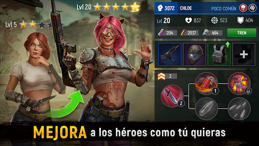 ¡Desbloquea a los supervivientes del mundo posapocalíptico! Mejora tus habilidades y fabrica armas. Todos los supervivientes tienen una estrategia de ataque: disparar o pelear. Reúne a un equipo para proteger la ciudad de los muertos y del ejército de mutantes. Gana la guerra contra los zombis.