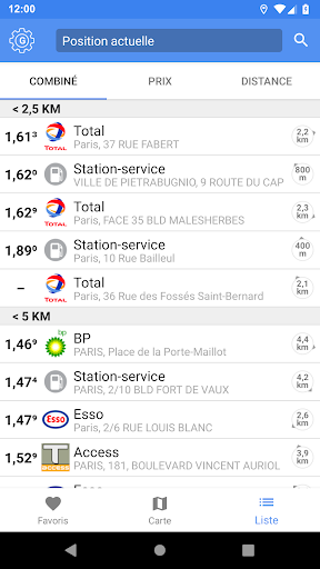 • Liste claire de toutes les stations-service de la région environnante