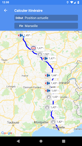 • Trouver les stations-service les moins chères le long d'un itinéraire