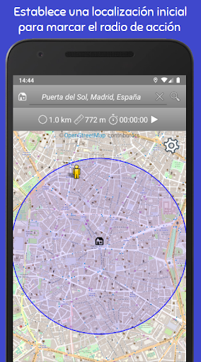 1 km est une application avec laquelle vous pouvez voir le rayon de 1 km ou la distance que vous choisissez tracée sur la carte dans la direction que vous choisissez, et en même temps vous pouvez voir votre position sur la carte en temps réel en utilisant la géolocalisation.