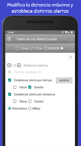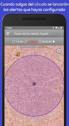 L'application vous permet également de programmer des alarmes avec son ou vibration si vous quittez le périmètre précédemment établi, et vous verrez également visuellement que la carte est marquée en rouge.