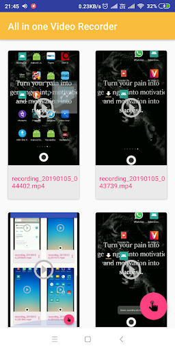All in One screen recorder lets you record your screen to HD and FullHD videos and it is the only screencast app in the Android market that can be paused and resumed while recording.