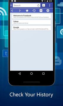 - Easy access to history and bookmarks, and clearing history, cooking and cache in advance settings.