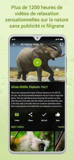 Est une application leader pour créer une atmosphère relaxante, apaisante et calme ou que vous soyez. Ouvrez une fenêtre virtuelle dans la nature et partez en voyage aux merveilles naturelles les plus magnifiques et aux endroits à couper le souffle du monde! Des nombreuses heures de documentaires sur la nature passionnants et époustouflants, films sur la nature ainsi que les vidéos de relaxation en format 4K Ultra HD apporteront la paix à votre esprit, la sérénité dans votre alentours et l'harmonie dans votre vie. Nature apporte l’équilibre!