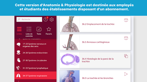 Cette version d'Anatomie & Physiologie est destinée aux employés et étudiants des établissements disposant d'un abonnement. Si vous ne savez pas avec certitude si cela est votre cas, nous vous recommandons de rechercher Anatomie & Physiologie pour acheter l’appli de Visible Body.