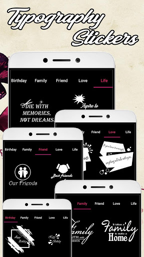Add Text On Photo provieds wide range of backgrounds,stickers,photo frames,Overlays.