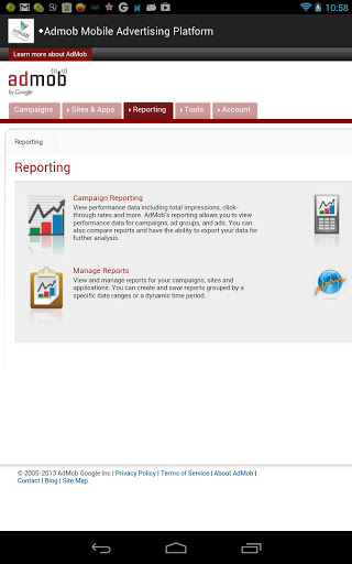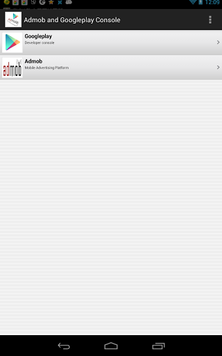 This app put Admob and google play developer console together.The AdMob function allow you to put a widget in your home screen to display you revenue. This widget display today's revenue, last 7 days revenue and last 30 days revenue.If you are an advertiser or a publisher you can easily view your AdMob statistics by campaigns, sites & apps and ads because in addition to the widget his app includes a user interface that allows you to access to your AdMob statistics.The google play console function is the Google Play Web Console App that will guide you through Google Play web console page you use in your PC. Just a Short cut for Google Play for your convenience.