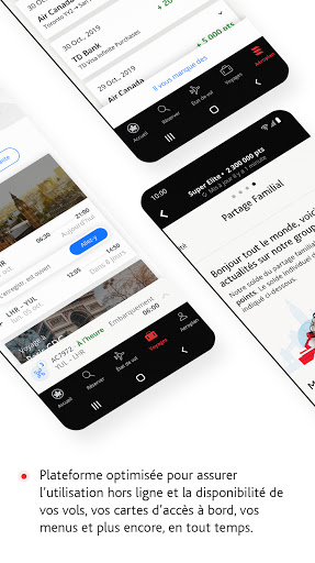 En téléchargeant l’appli ou en réglant un téléchargement automatique, vous acceptez l’installation de l’appli, ses futures mises à jour et mises à niveau et les modalités d’utilisation des applis mobiles d’Air Canada régissant l’utilisation de l’appli (http://www.aircanada.com/fr/mobile/tc_android.html). Retirez en tout temps votre consentement en désinstallant l’appli. Pour de l’aide sur la désinstallation, voir https://support.google.com/googleplay/answer/2521768
