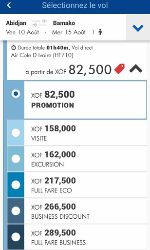 Avec l’application mobile d’Air Côte d’Ivoire, pilotez vos voyages du bout des doigts. Réservation et achat de billets, enregistrement en ligne, informations utiles, emportez tous les services Air Côte d’Ivoire dans votre smartphone