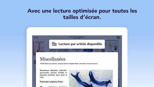 Sélectionnez en quelques clics vos titres de presse français et internationaux favoris et consultez-les tout au long de votre voyage, avec ou sans connexion internet.