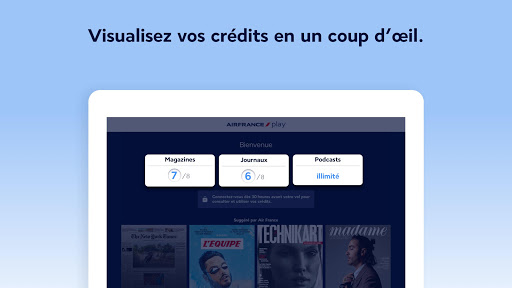 Avant votre vol, téléchargez gratuitement sur votre tablette ou smartphone, des journaux et des magazines.