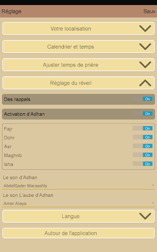 L'application contient aussi un réglage manuel du mois de l'hégire.
