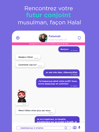 Les Imams, experts matrimoniaux et ingénieurs informatiques derrière l’application aident les jeunes musulmans célibataires à trouver le mari ou la femme parfaite pour établir un mariage heureux, solide, et plein d’ amour dans le respect de nos traditions et de notre culture.
