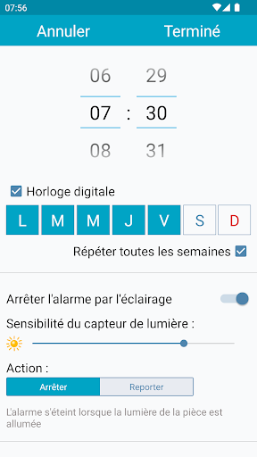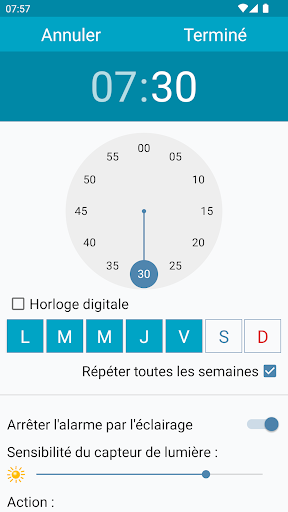 Réveil pour Android, design exceptionnel et facilité d'utilisation. Vous pourrez éteindre ou reporter l'alarme en allumant la lumière dans la pièce , secouant votre téléphone entre autres options. Sélectionnez un fichier MP3 ou une mélodie de tonalité de l'alarme , utilisez la lumière du flash de l'appareil photo, réveillez-vous avant que l'alarme ne commence à sonner et nombreuses autres fonctionnalités