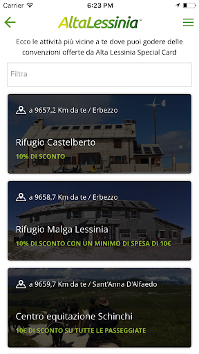 L'application officielle pour ceux qui aiment la Lessinia et veulent profiter de nombreuses opportunités exclusives!Réductions, promotions, conventions dans les hôtels, restaurants, abris, activités de loisirs.De plus, l'application vous offre d'autres services exclusifs tels que de nombreux chemins et chemins pour découvrir et essayer tout surtout sur le territoire, un service Webcam dédié et bien plus encore!L'application prédit une activation obligatoire en achetant une carte spéciale haute Lessinia: vous pouvez le trouver en ligne à l'adresse www.altalessinia.com et aux concessionnaires affiliés tout au long de la Lessinia.