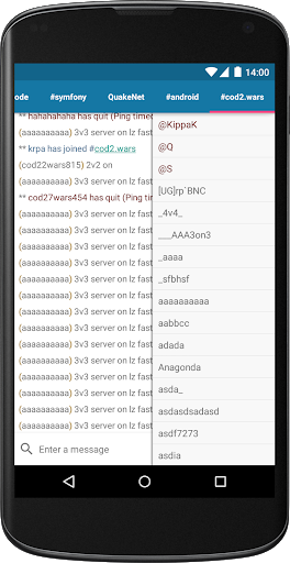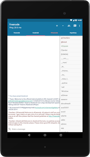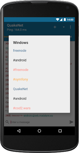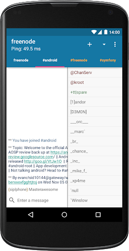 Un soucis avec l'application ? Merci de le signaler sur notre page de support : http://www.androirc.com/support. Vous pouvez également retrouver les dernières news sur notre site, http://www.androirc.com
