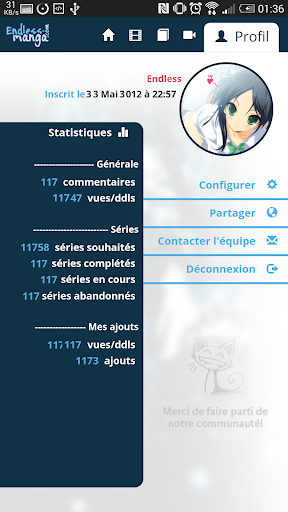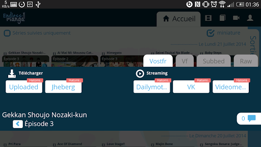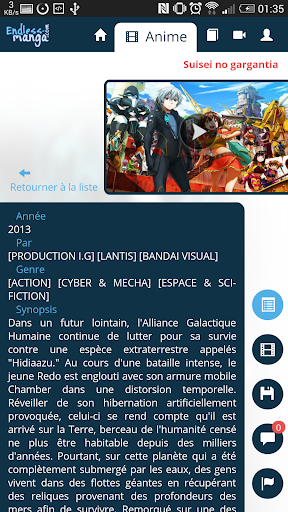Endless-manga est le seul site internet qui vous propose la première application qui vous permet de regarder tous vos animes et dramas en streaming VOSTFR sur votre mobile. L’application est alimentée par les hébergeurs normalement habitués à recevoir des vidéos de fansubs. Le site vous propose également le téléchargement d’épisodes et de mangas quand des liens sont disponibles. La nécessité d'avoir un compte vous permet d’organiser vos séries en « terminer, en cours, souhaiter, abandonné » mais, également de commenter les épisode ou séries. De plus, cela permet à l'application de se souvenir où vous êtes rendu.