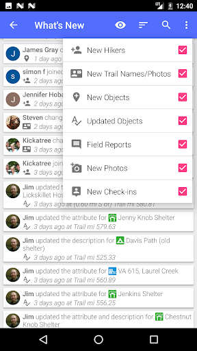 • La plupart des données de sentier et de la ville couragées par des milliers de randonneurs. Voir les rapports d'eau, les conditions de neige, les niveaux d'eau traversant les niveaux d'eau, les horaires de bus, les critiques de restaurants et d'hébergement, etc.