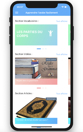 Application pour apprendre l'arabe de chez toi. Je mets à ta disposition des fiches de vocabulaires par thématiques avec QCM intégré afin de mieux intégrer les mots appris, des cours d'arabe aussi bien pour ceux qui veulent apprendre l'alphabet que ceux ayant quelques bases ou étant un peu plus avancés (niveau ajroumiya), des conseils bénéfiques qui t'aideront dans ton apprentissage de l'arabe tels que certaines méthodes d'apprentissages, des outils pour te faciliter dans ton quotidien.