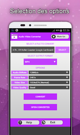 Notez que pour certains formats la conversion peut prendre un certain temps en fonction de l'appareil et des encodeurs.