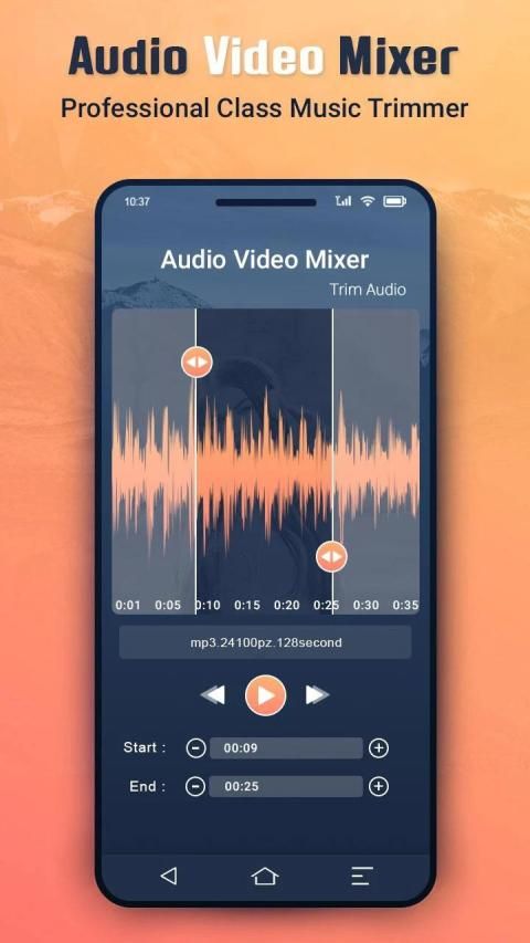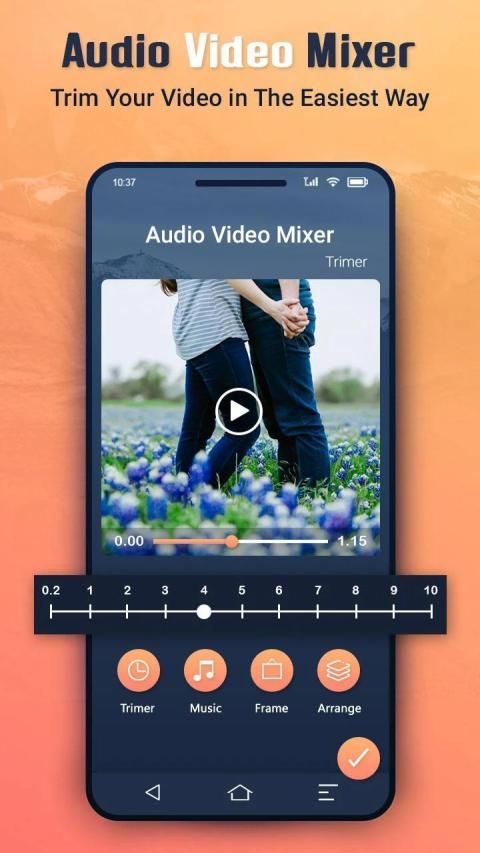 Select a background music for your video, using this video mixer with audio and audio video mixer hd app, or audio video mixer software, which is one of the best audio video mixer apps.