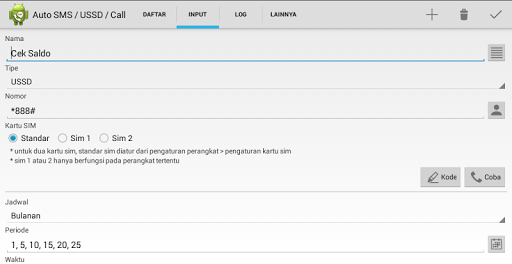 SUPPORT DUAL SIM (Fonctionne sur certains appareils ). Soutenir le code défini par l'utilisateur avant d'envoyer des SMS / USSD / appel, par exemple: * 858 * $ (numéro) * $ (montant: 1000.2000) # peut être converti en * 858 * 08120001234 * 1000 #